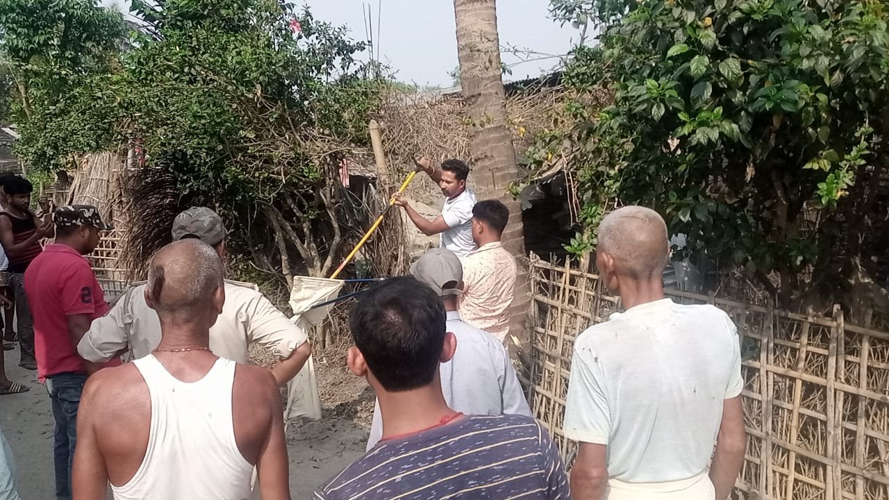 छातापुर प्रखंड क्षेत्र अंतर्गत लक्ष्मीनियां पंचायत स्थित वार्ड नंबर 10 में वन विभाग द्वारा एक सांप को पकड़ा गया। जानकारी अनुसार सांप नाग प्रजाति का गेहुअन बताया जा रहा है। कुछ दिनों से घर के आस पास में सांपों के घुसने से अफरा-तफरी मची हुई थी। जानकारी अनुसार मणिकांत झा के घर के समीप दोनों साप काफी दिनों से रह रहे थे। परंतु किसी को छती नहीं पहुंचाई थी। वही अब गर्मी बढ़ जाने के बाद से दोनों निकलकर रोड पर घूमते देखा जा रहा था। वही कभी कभाल दरवाजे, बरांडे सहित घर,आंगन में भी घूमते लोगों द्वारा देखा जाने लगा था। जिससे आस-पड़ोस के लोगों में भय का माहौल बना रहता था। आस-पड़ोस के लोग पवन झा,राजीव झा पप्पू झा,सुमन झा, बादल झा, अंकित कुमार , संपन कुमारी बताते है, रात को अगर किसी कार्य से घर से बाहर निकलते हैं तो साप रोड पर घूमते नजर आते है। वही कभी कभाल रास्ते पर आने-जाने वाले मोटरसाइकल के सामने भी आ जाया करती थी। जिसके बाद इस बात की सूचना सुपौल फॉरेस्ट डिपार्टमेंट को दी गई। वन विभाग से आए लोगो ने मोटर के मदद से पहले साप के बिल में पानी डाली जिसके बाद सांप के निकलने पर पकड़ा गया। वनपाल उपेंद्र मेहता बताते हैं कि जानकारी मिली थी एक जोड़ा सांप है। परंतु छानबीन करने के बाद में वन अधिकारियों द्वारा एक को पकड़ा गया है। जिसे वन में सुरक्षित स्थान पर छोड़ दिया जाएगा। सांप को पकड़ने में वन विभाग के अधिकारियों में वनरक्षी मृत्युंजय कुमार ,चंदन कुमार, एवं 6 दैनिक सुरक्षा मजदूर मौजूद थे।।।