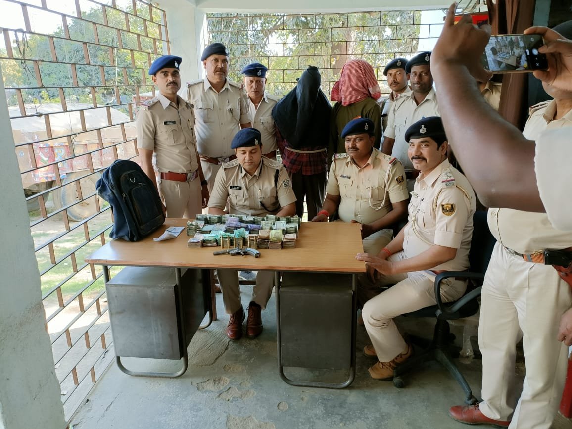 2 अपराधियों को खदेड़ कर पकड़ा गया तथा रुपये से भरा बैग तथा देसी कट्टा भी बरामद कर लिया गया।
