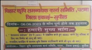 बिहार राज्य में खरीफ सीजन किसानों सहित पूरे प्रदेश के लिए अतिमहत्वपूर्ण होता है। खरीफ सीजन के शुरुवात होते ही कृषि विभाग की रीढ़ मतलब कृषि समन्वयक और किसान सलाहकार के संयुक्त हड़ताल पर जाने से सुपौल जिला सहित पूरे प्रदेश के किसानों को सरकारी बीज सहित कृषि जानकारी के लिए भटकते हुए देखा जा रहा है।वेतनमान संशोधन के समर्थन में पिछले तीन दिनों से हड़ताल पर डटे कृषि समन्वयकों ने आंदोलन को और तेज करते हुए जिला कृषि कार्यालय के समक्ष जोरदार प्रदर्शन किया।जिला भर से इक्कठा हुए कृषि समन्वयकों ने सरकार और विभाग के प्रति रोष जताते हुए कहा कि इन दोनों के कथनी और करनी में काफी फर्क है।