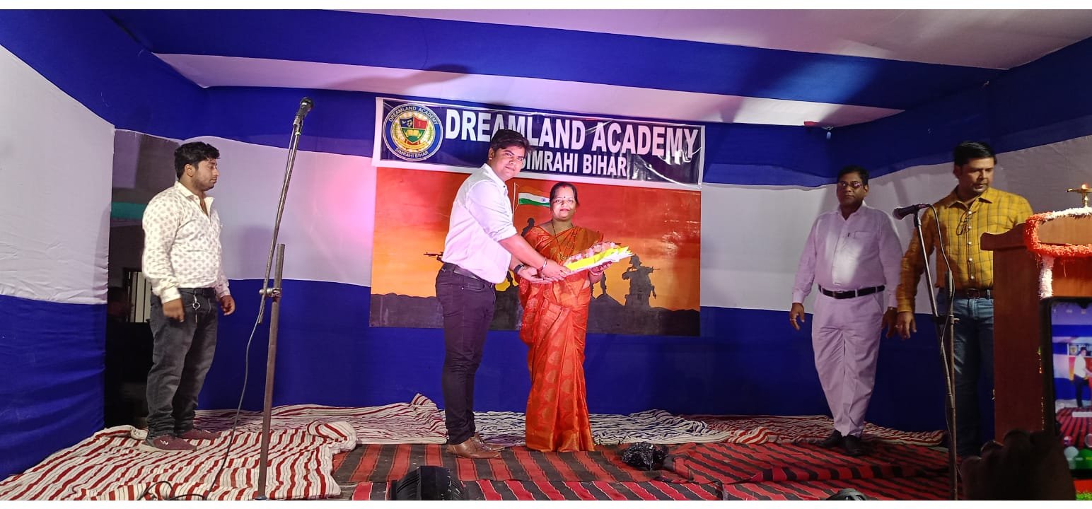 सिमराही नगर पंचायत स्थित Dreamland Academy Simrahi” में निदेशक अमित कुमार रंजन के द्वारा प्रात: झंडोत्तोलन किया गया। इसी क्रम में संध्या 6 बजे से विद्यालय के छात्र एवं छात्राओं द्वारा स्वंत्रता दिवस के उपलक्ष्य में एक सांस्कृतिक कार्यक्रम का आयोजन भी किया गया जिसमें मुख्य अतिथि श्रीमान ” प्रखंड शिक्षा पदाधिकारी “एवं सिमराही नगर पंचायत के मुख्य पार्षद द्वारा दीप प्रज्वलित करके कार्यक्रम का शुभारंभ किया गया। विद्यालय के निदेशक अमित रंजन जी ने प्रखंड शिक्षा पदाधिकारी को एवं विद्यालय के प्राचार्य ” रमण पाठक” जी ने सिमराही के मुख्य पार्षद को भेंट प्रदान करके दोनों सम्मानित अतिथियों का स्वागत किया। कार्यक्रम का आकर्षण कारगिल युद्ध पे आधारित एक दृश्य को विद्यार्थियों द्वारा मंच में प्रस्तुत करना , अनेकता में एकता एवं शिक्षकों द्वारा देशभक्ति गीत का प्रस्तुत करना रहा।