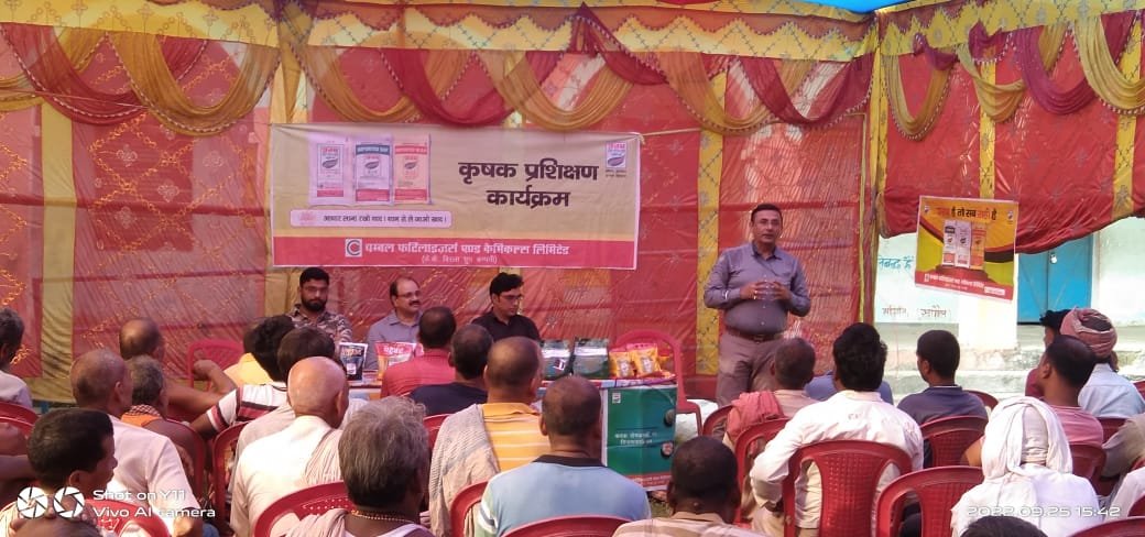 चम्बल फर्टिलाइजर एंड केमिकल लिमिटेड के राज्य प्रबंधक आर के सिंह, एरिया मैनेजर एच.एम. सिंह जी और सेल्स ऑफिसर मनीष झा ने बताया कि यह किसान प्रशिक्षण कार्यक्रम संतुलित फसल पोषण, फसलों में खरपतवारों, रोगों और कीटों के प्रकोप से बचाव एवं नियंत्रण के विषय पर आधारित है। इस प्रशिक्षण कार्यक्रम में रसायनों तथा उर्वरकों का समुचित प्रयोग, उसकी सही खुराक और सही समय की चर्चा की गई, जो कि माननीय प्रधानमंत्री की दूरगामी सोच किसानों की आय दोगुनी करने की ओर है। चम्बल फ़र्टिलाइज़र कंपनी द्वारा आयोजित किसान प्रशिक्षण कार्यक्रम में रामपुर गावँ सहित आसपास के कई प्रगतिशील किसान सहित सहित सैकड़ो किसान अपने अपने समस्याओं के साथ शामिल हुए और प्रशिक्षण में शामिल होकर लाभान्वित महसूस किए।