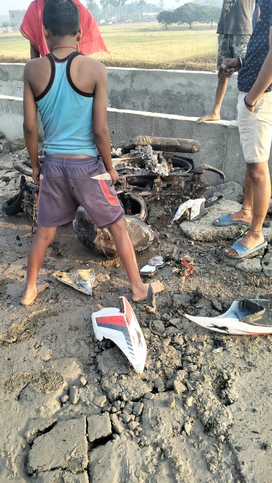 मोटरसाइकिल के साथ एक युवक को अपराधियों ने जिंदा जलाया।