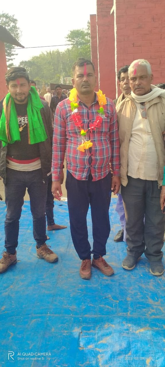प्रतापगंज: गोबिंदपुर पंचायत के वार्ड 14 में निर्विरोध सचिव पद के लिए चुने गए दीनबंधु यादव ।