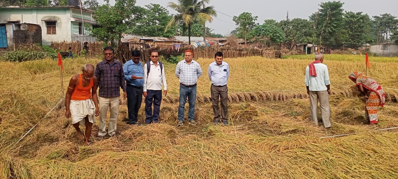 ” क्रॉप कटिंग कर धान के उपज के जाँच के लिए पहुँचे उप निदेशक सांख्यकी पदाधिकारी, राघोपुर प्रखण्ड में दूसरी क्रॉप कटिंग, 63 क्विंटल प्रति हेक्टेयर उपजी धान”।