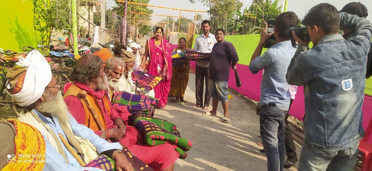 सरायगढ़ :भपटियाही प्रखंड के औरही गांव निवासी रंजू देवी तथा उसके पुत्र रुद्रनाथ मंडल ने अपनी भतीजी के शादी के अवसर पर साधु-संतों तथा अन्य लोगों के बीच कीमती कंबल का वितरण किया। सरायगढ़ वार्ड नंबर 11 स्थित अपने आवास पर गुरुवार के दिन 24 घंटे का हरे रामा हरे कृष्णा कीर्तन समापन के बाद रंजू देवी ने काफी संख्या में संतों तथा अन्य लोगों को अपने द्वार बुलाकर, उनके बीच कंबल वितरण किया।
