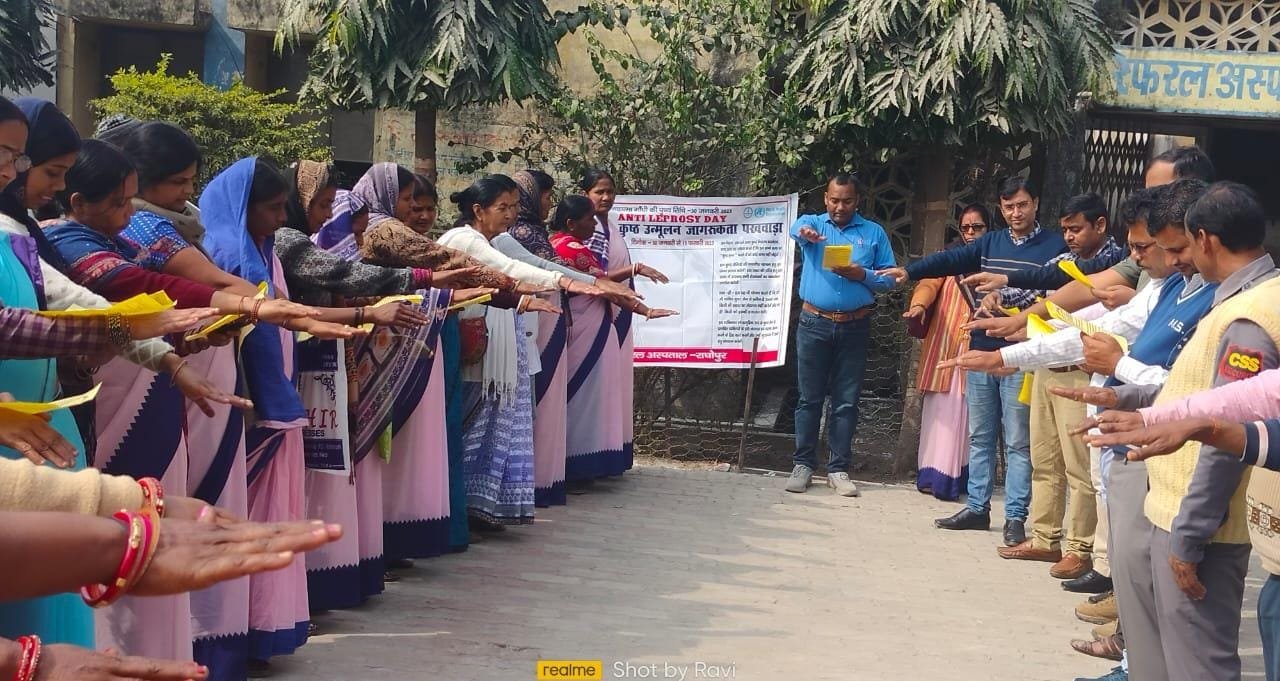 सकता है। प्रदेश को कुष्ठ मुक्त कराना हमारी सामूहिक जिम्मेवारी है। कुष्ठ रोग के संदेहास्पद लक्षण को पहचान कर उन्हें रेफरल अस्पताल/प्राथमिक स्वास्थ्य केन्द्र पर जाकर जांच कराने के लिए प्रेरित करें। संदेश पढ़ने के उपरांत डॉ संजीव कुमार द्विवेदी ने सबको संकल्प दिलाया। संकल्प के दौरान कहा गया कि मैं कुष्ठ रोग के प्रारंभिक लक्षण वाले व्यक्ति जिनके शरीर के किसी भाग पर दाग-धब्बे हो तथा जिनमें दर्द व खुजली नहीं होती हो तथा जो जन्म से नहीं हो के कुष्ठ रोग के संदेहास्पद व्यक्ति मानते हुए नजदीकी प्राथमिकी स्वास्थ्य केन्द्र पर जाने के लिए प्रेरित करूंगा ताकि जिन्हें कुष्ठ है उसका पूरा इलाज हो सके। यह भी शपथ लेता हूं कि मेरी नजर में मेरे परिवार, पड़ोस व समाज में कोई भी व्यक्ति कुष्ठ रोग से प्रभावित है और उसका इलाज एमडीटी से हो चुका है तो मैं उनके साथ बैठने, खाने, घूमने-फिरने पर किसी प्रकार का भेदभाव नहीं करूंगा। मैं यह भी शपथ लेता हूं कि दिव्यांग कुष्ठ प्रभावित व्यक्ति को किसी भेदभाव से नहीं देखूंगा तथा उन्हें नि:शुल्क चिकित्सा सेवा उपलब्ध कराने में उसकी भरपूर मदद करूंगा। सरकार द्वारा उनको मिलने वाली दिव्यांगता प्रमाण पत्र तथा पेंशन राशि इत्यादि दिलवाने में भी उनकी पूरी मदद करूंगा। कुष्ट उन्मूलन पखवाड़ा की तिथि 30 जनवरी से 13 फरवरी तक रखा गया है। संकल्प लेने वालों में प्रखण्ड स्वास्थ्य प्रबंधक नोमान अहमद, पीएमडब्लू ज्योति वर्मा, प्रखण्ड स्वास्थ्य लेखापाल पवन दास रविरंजन शास्त्री,मो०सादाब, प्रसन्न झा, कन्हैया राय, अर्पणा देवी, रागनी कुमारी, नरेंद्रर रार, भरत लाल शर्मा, पंकज कुमार,सुमन मेहता, रविन्द्रर सिंह, एएनएम एवं आशा सहित अन्य शामिल थे।