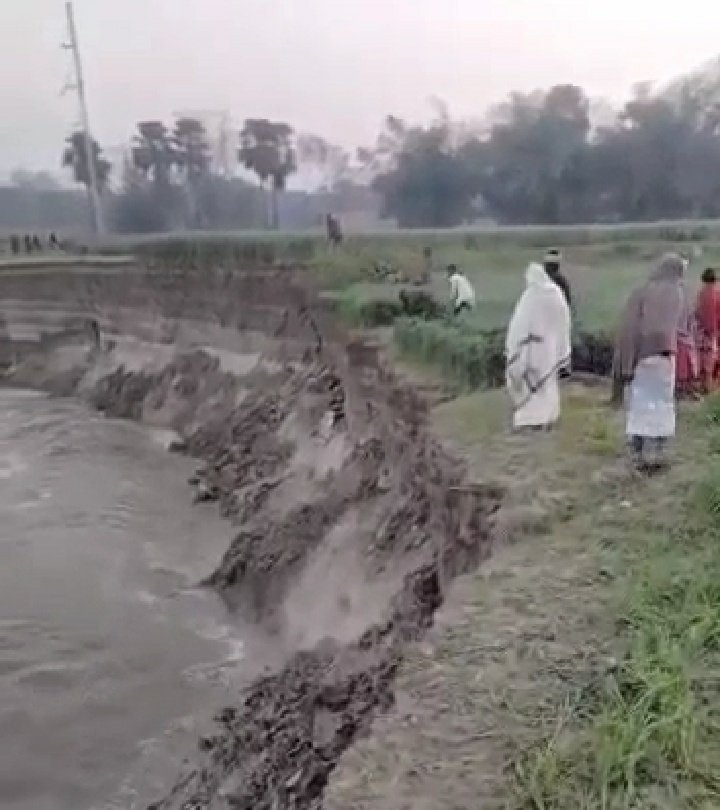 बेगूसराय में एक बार फिर गंगा नदी का कटाव को लेकर लोगों में किसानों में दहशत का माहौल उत्पन्न हो गया। वही गंगा घाट की कटाई से जहां लगे खेतों का फसल लगातार गंगा में समा रहे हैं।वहीं इस को लेकर किसानों में हाहाकार मचा हुआ है। यह पूरा मामला तेघरा प्रखंड के आधारपुर पंचायत के अजेगर बोर तोड़ गंगा घाट किनारे की है। बताते चलें कि किसानों की सैकड़ों एकड़ में लगी गेहूं मक्का आलू की फसल इन दिनों गंगा के भीषण कटाव के गंगा नदी में समा रहे हैं।वही इस कटाव से किसानों की आंखों के सामने गंगा में समा रहे हैं। इससे किसानों में दहशत का माहौल बना हुआ है। लहलहाती फसल के कटाव और गांव में खतरा से नाराज किसानों और ग्रामीणों ने इसको लेकर विरोध प्रदर्शन कर गंगा कटाव निरोधी कार्य चलाने की भी मांग कर रहे हैं। गंगा में भीषण कटाव को लेकर अधिकारी भी मानते हैं कि जिस तरीके से कटाव हो रहा है। ऐसी स्थिति में कटाव निरोधी कार्य चलाना मुश्किल हो रहा है। अधिकारियों ने बताया कि गंगा के कटाव से ग्रामीणों में भय का माहौल है और लोग रात को जगने को भी मजबूर हैं।