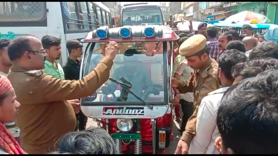 पुलिस द्वारा ई-रिक्शा चालकों पर बेरहमी से पिटाई करने को लेकर आक्रोशित ई रिक्शा चालकों ने किया किया घंटो मुख्य मार्ग को जाम।
