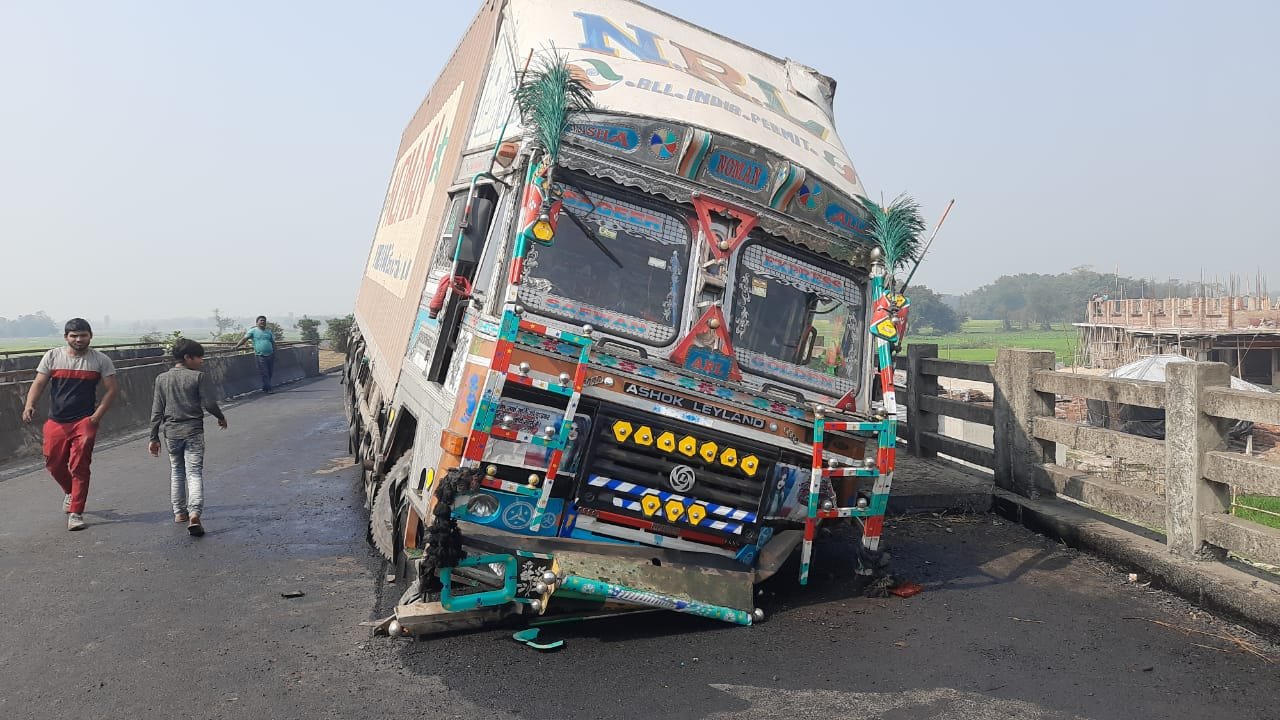 भीमपुर थाना क्षेत्र के रानीपट्टी नहर स्थित एनएच 57 पर सोमवार की सुबह एक ट्रक अनियंत्रित होकर दुर्घटनाग्रस्त हो गई। हालांकि इस घटना में चालक और उपचालक किसी तरह अपनी जान बचाने में सफल रहे। वहीं दुर्घटना के बाद आसपास के लोगों के भीड़ जमा हो गई। जिसके बाद इसकी सूचना स्थानीय थाना को दिया। इधर, सूचना के बाद स्थानीय पुलिस ने मौके पर पहुंचकर स्थिति का जायजा लिया और आगे की कार्रवाई में जुट गई। ट्रक चालक ने बताया कि ट्रक आरजे 32 जीसी 2404 में फार्च्यून एवं अन्य समान लेकर गुवहाटी जा रही थी। उसी क्रम में थाना क्षेत्र के रानीपट्टी नहर के समीप एक अन्य गाड़ी के ओवरटेक के कारण अचानक ट्रक का नियंत्रण बिगड़ गया।