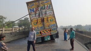 अनियंत्रित होकर फार्च्यून लदा ट्रक हुई दुर्घटनाग्रस्त, किसी प्रकार की हताहत नहीं।