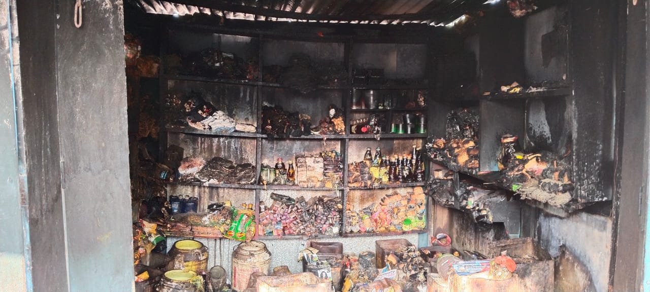 परसरमा में किराना दुकान में हुई आगलगी में लाखों के सामान जले