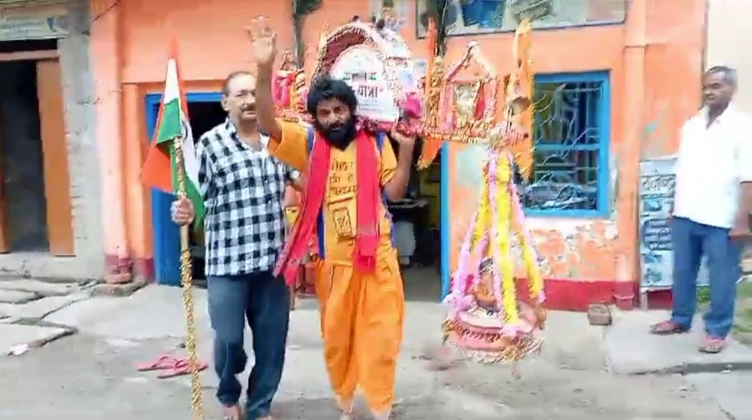 भारत के वीर शहीद जवानों के लिए गुणवंत जोशी कांवर में जलभर कर अजगैविनाथ धाम से सोमनाथ, गुजरात पैदलयात्रा के लिए हुए रवाना।