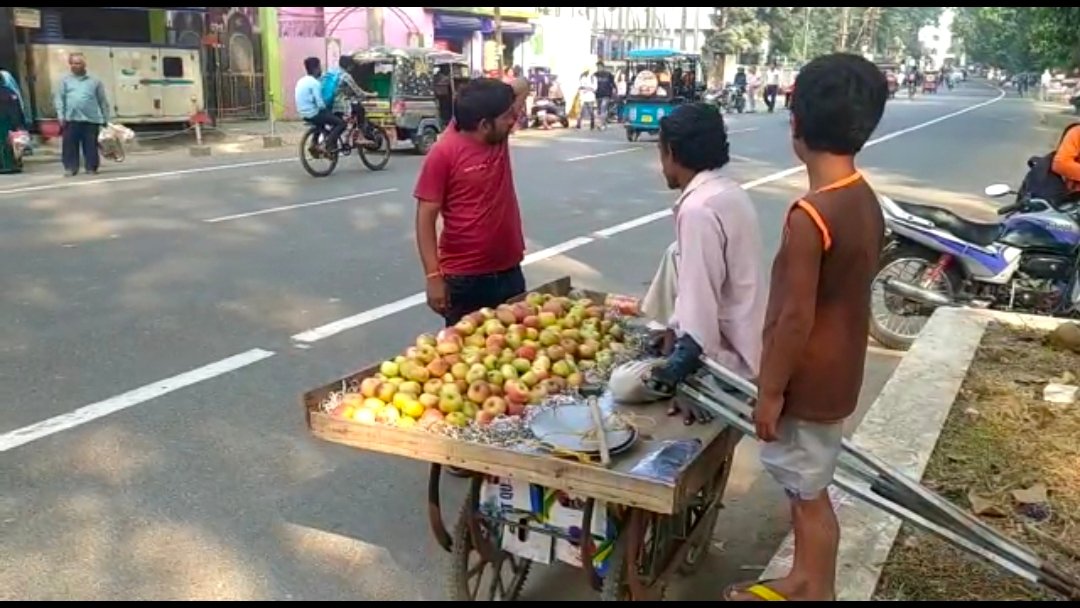 मासूम बच्चे को पढ़ने का है शौक,लेकिन पिता के दिव्यांग होने के चलते कर रहे हैं बचपन से फल बेचने का काम ।