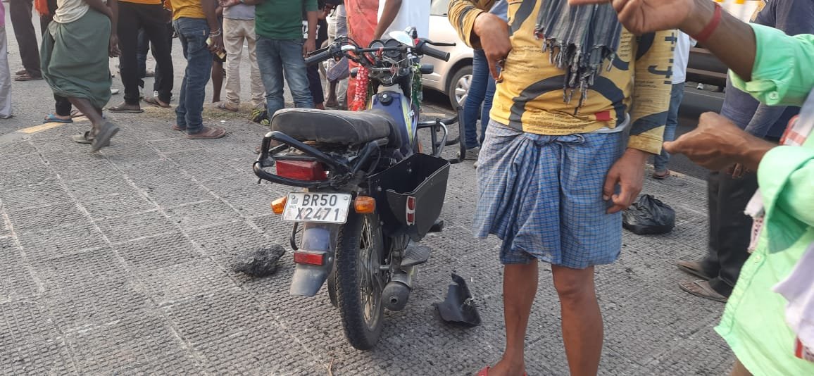 टक्कर लगने के बाद दोनों व्यक्ति गाड़ी की चपेट में आ गया। जिससे दोनों पति पत्नी की मौत घटनास्थल पर ही हो गई। वही घटना के बाद स्थानीय लोगो ने दुर्घटना कर भाग रही गाड़ी का पीछा कर पकड़ लिया गया। जबकि घटना के बाद बांस चौक पर जाम की स्थिति बन गई। जिसकी सूचना स्थानीय थाना को दी गई। वही घटना की जानकारी मिलते ही थानाध्यक्ष अभिषेक अंजन ने दल बल के साथ घटनास्थल पर पहुंचकर शव को अपने कब्जे में लेते हुए दोनों लेन पर खड़ी गाड़ियों की जाम को हटाया।