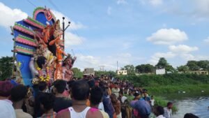 नम आंखों से भक्तों ने दी मां दुर्गा को विदाई।
