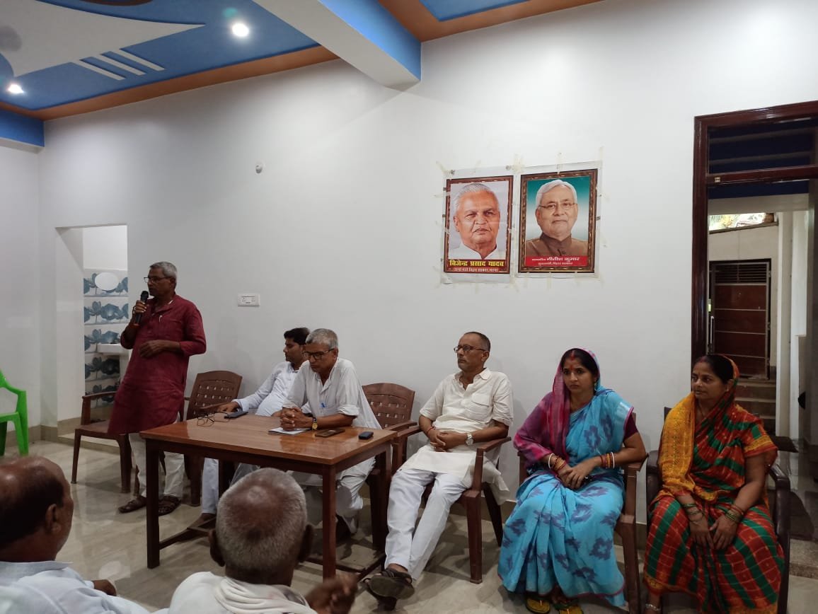 प्रखंड क्षेत्र के न्यू मार्केट महिला प्रकोष्ठ के जिला अध्यक्ष पूनम देवी के निज आवास राघोपुर में बुधवार को प्रखंड जदयू कार्यकर्ताओं की एक बैठक आयोजित की गई। जिसकी अध्यक्षता पार्टी के प्रखंड अध्यक्ष प्रो कमल प्रसाद यादव ने किया। बैठक को संबोधित करते हुए प्रखंड अध्यक्ष प्रो यादव ने कहा कि केंद्र की मोदी सरकार के कार्यकाल में देश मे बेरोजगारी, महंगाई चरम पर है। लोग त्रस्त है, लेकिन सरकार आम जनता के बारे में सोचने के बजाय अपने ही प्रचार प्रसार में लगी रहती है। कहा कि पार्टी के निर्देशानुसार आगामी 8 सितंबर को जदयू कार्यकर्ताओं द्वारा मशाल जुलूस निकालकर विरोध प्रदर्शन किया जाएगा। उन्होंने इसे लेकर कार्यकर्ताओं से अपील किया कि अधिक से अधिक संख्या में इस मशाल जुलूस में भाग लेकर इसे सफल बनावें।