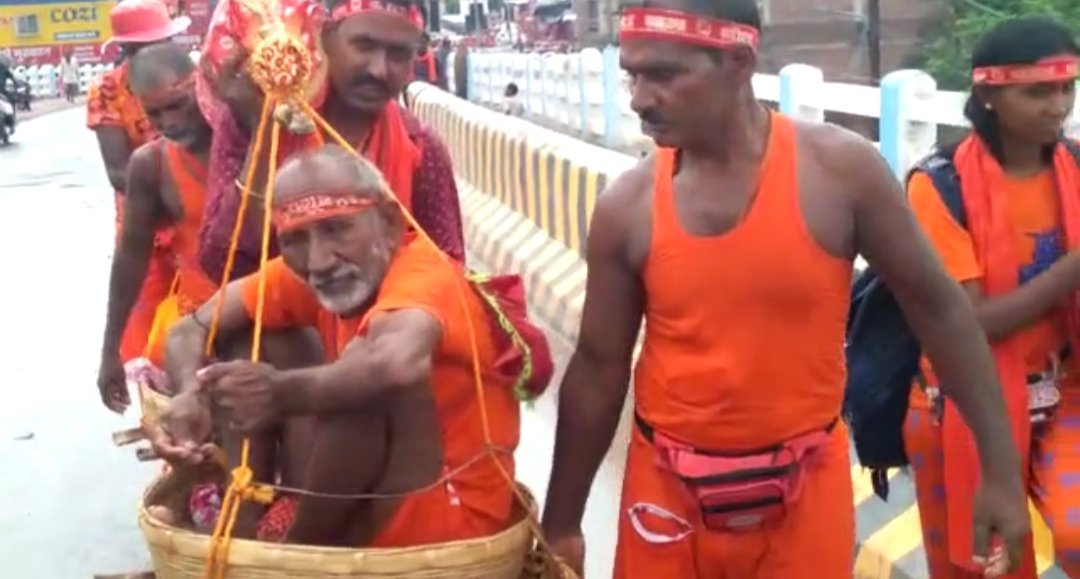 भागलपुर :पूर्णिया जिला के नया टोला रिकाबगंज के तीनभाई अपनी 82 वर्षीय मां मीरा देवी और 85 वर्षीय पिता नाथू यादव को कावड़ में बिठाकर सुल्तानगंज से पैदल देवघर रवाना हुए ।तीनों भाइयों के सहयोग के लिए इनके बहनोई और साथ में परिवार के लोग भी चल रहे हैं ।श्रवण कुमार ने बताया कि माता पिता के आशीर्वाद से हम तीनों भाइयों में कभी वैचारिक मतभेद नहीं हुआ है हम यह संदेश देना चाहते हैं कि सबसे धनी व्यक्ति वही है जिन पर माता-पिता का आशीर्वाद हो उसी परिवार में एकता और सुखी नजर आती है। हम आपको बता देंगे पिछले दिनों भी ऐसे ही एक श्रवण कुमार सुल्तानगंज से देवघर अपने पिता और माता को अपने कावड़ में बिठाकर रवाना हुए थे।