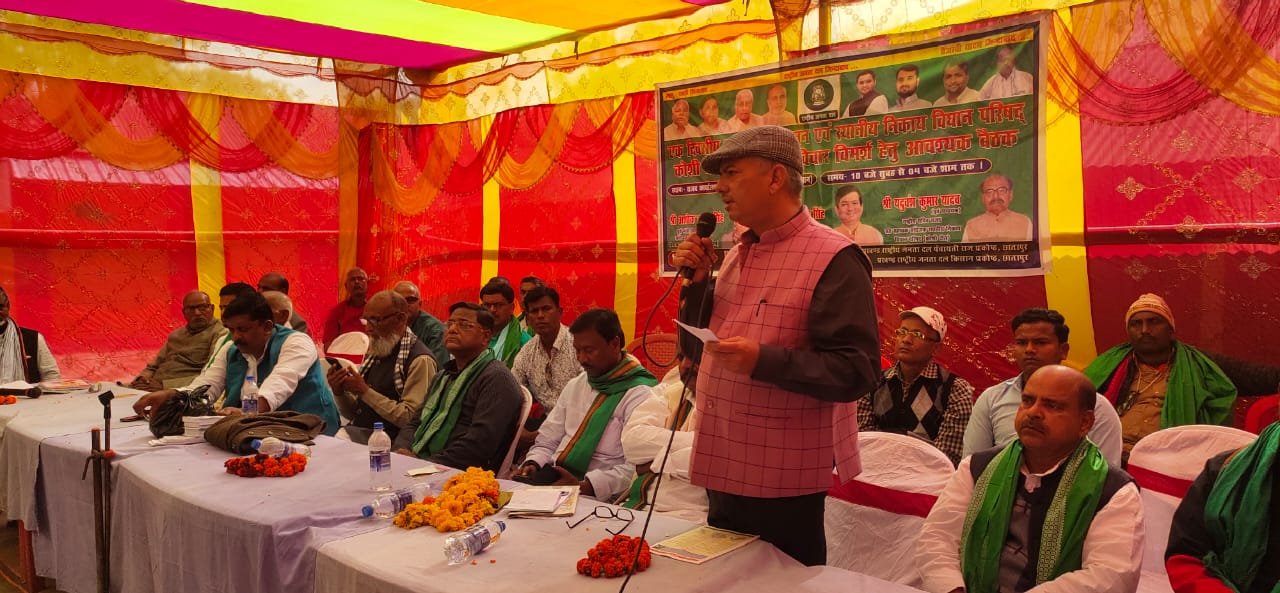 आपके ऑदोलन को सदन से लेकर सडक तक ले जाने में कभी पिछे नहीं रहूंगा, कहा कि पूर्व एमएलसी बलराम सिंह यादव के निधन पश्चात कोशी इलाके की आवाज 12 वर्षो से दबी हुई है, 18 करोड की राशि में छातापुर को अपना हिस्सा नहीं मिल पाया है, यैसे में अपने सम्मान व अधिकारों की रक्षा के लिए कर्तव्यनिष्ठ व्यक्ति को समर्थन देने की आवश्यकता है, कहा कि वे सहरसा जिले के सिमरी बख्तियारपुर के सोनपुरा गांव के रहने वाले हैं, वहीं सुपौल के बरूआरी स्थित ननिहाल में रहकर उन्होने शिक्षा दिक्षा ग्रहण की, नीजि कारणों से प्रध्यापक की नौकरी छोड़कर उन्होने जनसेवा के क्षेत्र में कदम रखा है, बैठक के दौरान नवनिर्वाचित सभी जनप्रतिनिधियों को वस्त्र देकर सम्मानित किया गया, वहीं पंचायतीराज प्रकोष्ठ के नवचयनित पंचायत अध्यक्षों को सपथ ग्रहण करवाकर सम्मानित किया गया, जबकि पार्टी के पंचायत व प्रखंड स्तरीय पदाधिकारियों को भी सम्मानित किया गया, बैठक में पूर्व सांसद विश्वमोहन कुमार, पूर्व विधायक यदुवंश यादव, जिलाध्यक्ष रामनाथ मंडल, रामसुंदर मुखिया, अकिल अहमद, उदित नारायण यादव, अनुरंजन यादव, रमेश यादव, धीरेंद्र यादव, श्याम यादव, दीपक कुमार सरदार, संतोष सरदार, भुवनेश्वर नीजपुरिया, नागेश्वर मंगरदैता, नागेश्वर भुस्कुलिया, नीतीश मुखिया, पुनीत कुमार यादव ने संबोधित करते आगामी चुनाव में समर्थन देने और दिलाने का भरोसा दिलाया, बैठक में प्रमोद कुमार यादव, जहूर आलम, रंजीत कुमार रमण उर्फ बबलु कुसियैत, विजय प्रकाश यादव, उपप्रमुख संजय कुमार यादव, कृष्णा राज सहित सैकडों कार्यकर्ता उपस्थित रहे