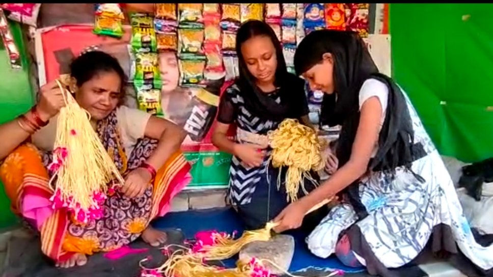 आस्था का महापर्व छठपूजा में दर्जनों मुस्लिम परिवार बरसों से कर रहे बद्दी( सूत की माला )बनाने का कार्य।