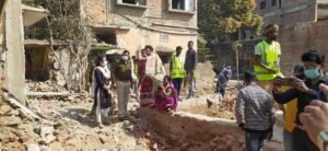 बम ब्लास्ट में आहत हुए परिजनों ने घर तोड़ने पर लगाई पाबंदी, अपनी मांगों को ले बैठे धरना पर।