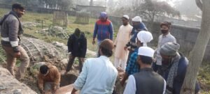 नदी में मिले अज्ञात शव का पोस्टमार्टम के बाद किया गया सुपुर्द-ए-खाक।